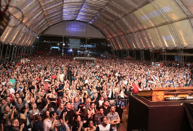 Um dos shows mais aguardados da Feira Nacional da Soja, a Fenasoja 2018, atraiu milhares de pessoas à Arena Via Certa, na noite desta quinta-feira, 3, quando subiu ao palco a dupla Fernando & Sorocaba. Com um repertório animado e acompanhado pelo público em diversas canções, os cantores animaram cerca de 18 mil pessoas que passaram pelo evento.