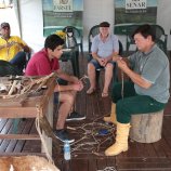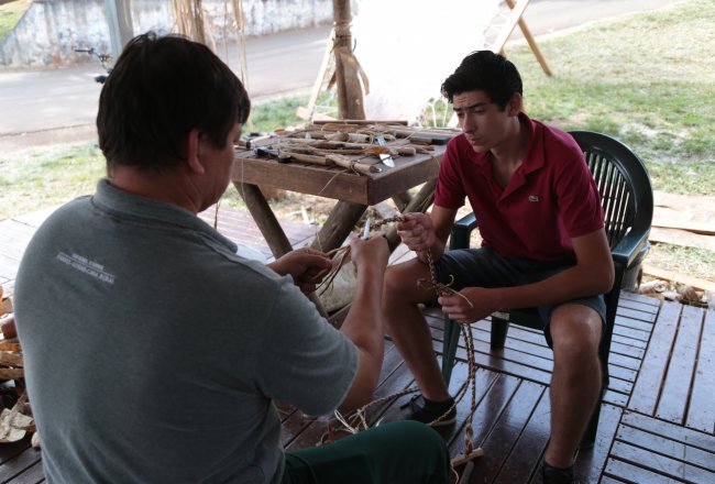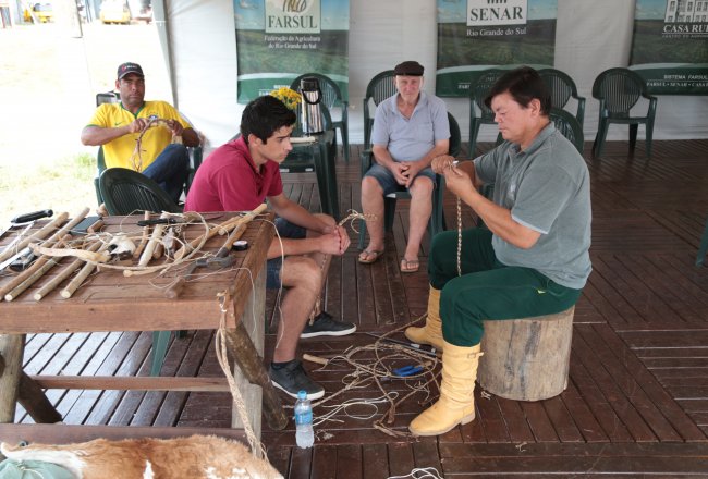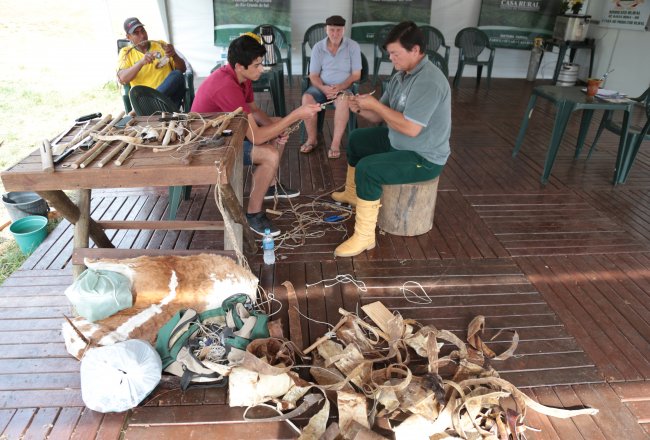 oficina no espaço do Serviço Nacional de Aprendizagem Rural (SENAR) sobre o trabalho artesanal do guasqueiro. O visitante que sentir curiosidade, e vontade em aprender há possibilidade de