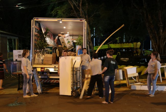 Para muitos a Fenasoja encerrou no último domingo (06), mas para muitos profissionais o trabalho seguiu durante a semana. Eles estão desmontando a estrutura, visitada por mais de 200 mil pessoas durante os 10 dias de evento. A maior parte do trabalho foi concluída nesta sexta-feria. O presidente da Comissão de Infraestrutura e Manutenção da Fenasoja, Daniel Dallalba, ressalta que o trabalho de desmontagem está sendo rápido. ?A gente se surpreende pela rapidez e agilidade do pessoal.?, afirma. A Fenasoja tem até o dia 30 de maio para entregar este que foi o cenário do evento indispensável para o desenvolvimento regional. Após concluído todo o trabalho, uma vistoria é realizada pela prefeitura para que, posteriormente, o espaço volte a ser ocupado pela comunidade.
