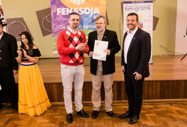 Segundo o presidente da festa, Juan Renê Ultgren, este é o momento para celebrar a parceria entre a Fenasoja e a Fiesta Del Inmigrante. "Como sempre fomos muito bem recebidos por esta tão importante feira, para nós é um prazer poder lançar nossa festa aqui no Brasil. Queremos receber muitos brasileiros durante os 10 dias de evento", afirmou Juan Ultgren, que na oportunidade recebeu o decreto de hospede oficial do município de Santa Rosa, assinado pelo prefeito Alcides Vicini.