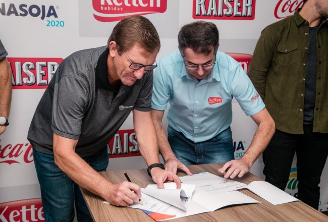 Foi assinado na noite da quinta-feira, 02 de maio, o Contrato de Fornecimento Exclusivo de Bebidas da FENASOJA 2020. O evento foi realizado na sede da Ketten Bebidas em Santa Rosa, e contou com a participação do gerente Regional da Heineken para o RS e SC, Vicente Araújo Meirelles Leite e do executivo Regional de Vendas da Heineken, Pablicio Cunha.