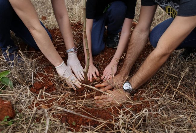 O plantio foi realizado pelos colaboradores da cooperativa, integrantes da