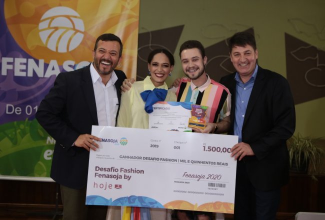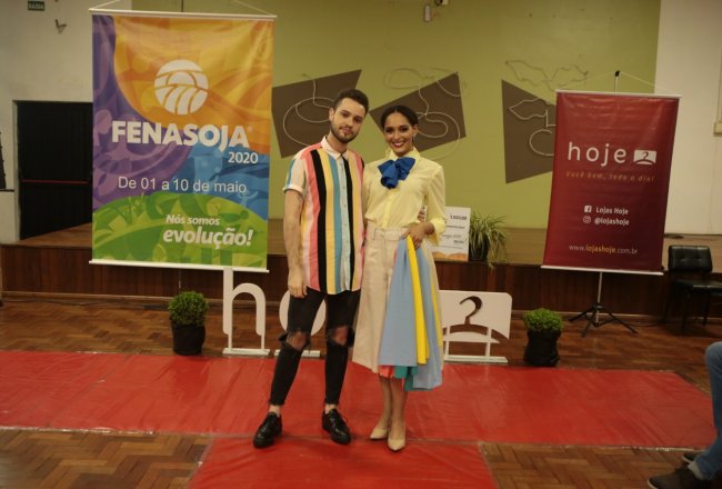A FENASOJA 2020 e Lojas Hoje concluíram na noite da quarta-feira, 02 de outubro, o Desafio Fashion. O Centro Administrativo do Parque de Exposições recebeu os cinco looks finalistas. Após um desfile, onde cada roupa foi apresentada, o look criado pelo jovem Eduardo Fischer foi considerado destaque pelos jurados e que irá vestir as recepcionistas da feira.