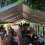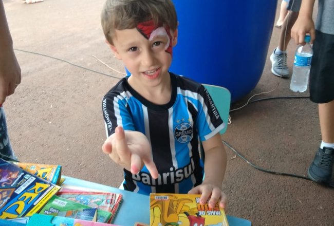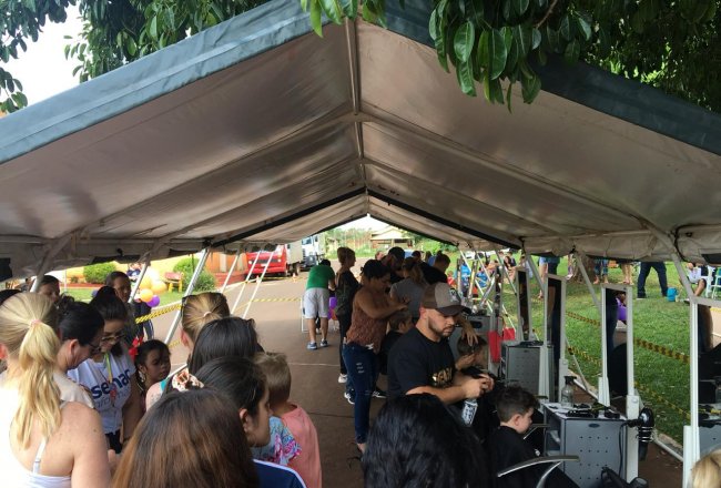 participou de atividades de cortes de cabelo, pinturas de rosto e confecção de