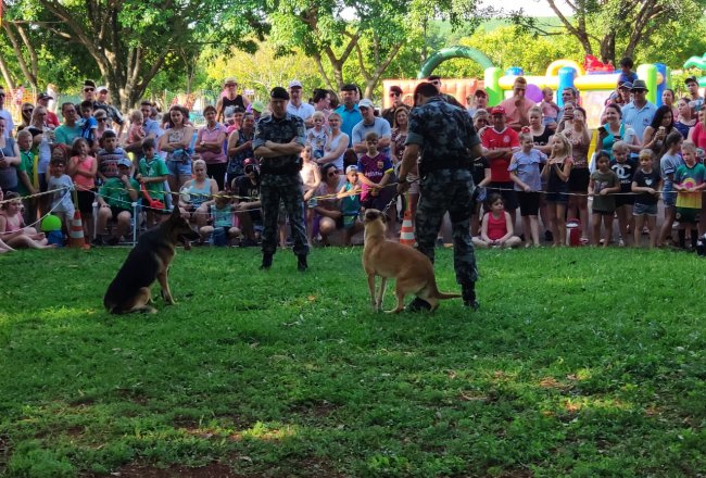 coordenadas pela Brigada Militar com atividades com cães do Pelotão de