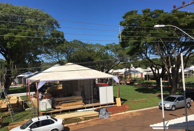 de trabalho diurnas e noturnas são realizadas para instalar as empresas que apostaram na feira