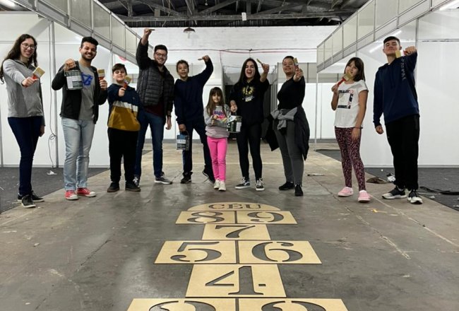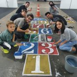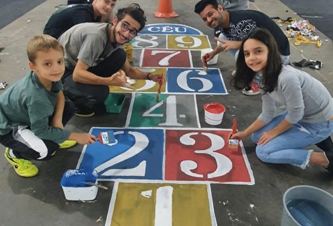 semana, integrantes da Comissão jovem realizaram pinturas de amarelinhas no Parque