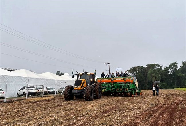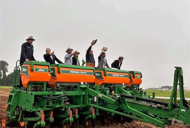 O ato realizado neste sábado 30/04, em Santa Rosa, no noroeste gaúcho, marcou oficialmente o início da semeadura da canola no Brasil. O plantio simbólico foi conduzido pelo vice-presidente da República, Hamilton Mourão, que esteve acompanhado de diversas autoridades federais, estaduais e municipais, assim como pelo presidente da Fenasoja 2022, Elias Dallalba, integrantes da comissão organizadora e da Associação Brasileira dos Produtores de Canola (Abrascanola). O ato realizado junto à área da Exporural esteve integrado à programação da feira, que ocorre no Parque Municipal de Exposições Alfredo Leandro Carlsson e segue até o dia 08/05.