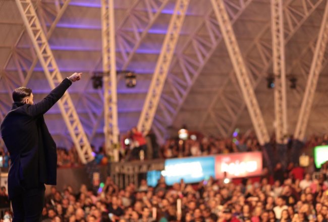 apresentação na noite do sábado (30) na Arena VIACERTA Banking, durante a