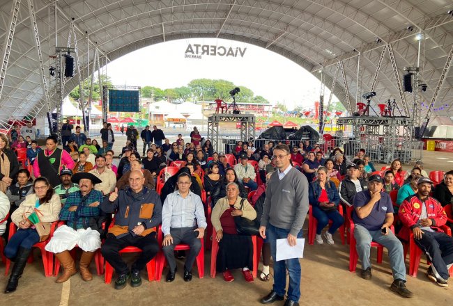 Prefeito de Santa Rosa, Anderson Mantei realizou nesta quarta-feira (04), a entrega das matrículas de 173 unidades habitacionais regularizadas. O ato aconteceu no Parque de Exposições Alfredo Leandro Carlson, no sétimo dia da Fenasoja 2022. Estavam presentes autoridades da região, a comissão organizadora da Fenasoja, o Deputado Federal Osmar Terra, secretários municipais e a comunidade.