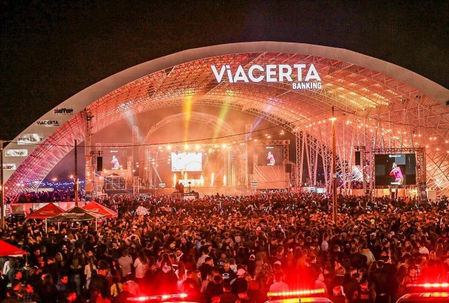 A noite de sexta-feira, contou ainda, com apresentações de artistas locais, como João Lenz, DJ Madz e Kaike Rodrigues, no Palco Fenasoja Sunset.