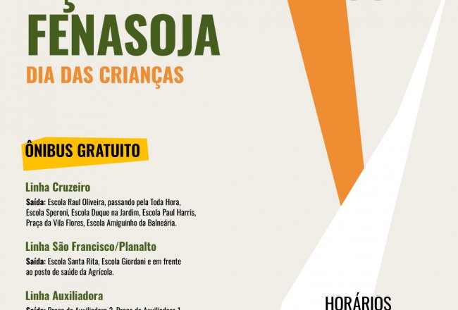 Está confirmada para o domingo (22), a Ação Fenasoja especial para o Dia da Criança. Evento inicia a partir das 13h30min no Parque de Exposições Alfredo Leandro Carlson, em Santa Rosa. Será uma tarde inteira de atrações dedicada às crianças.