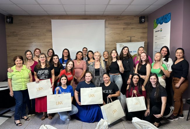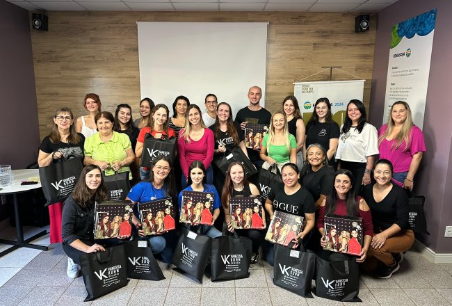 preparação de recepcionistas que atuarão na Fenasoja 2024. No treinamento de