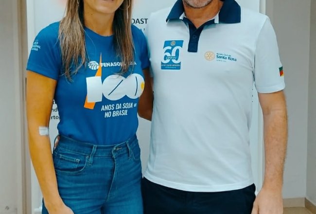 A manhã do sábado (04/05) foi de solidariedade. O movimento voluntário que realiza a Fenasoja 2024 promoveu doação de sangue no Hemocentro de Santa Rosa. Integrantes da feira foram convidados a ir até o local e colaborar com o banco de sangue do município. A ação, que foi feita em conjunto com a Fenasoja, o Rotary Club de Santa Rosa e o Hospital Vida e Saúde, resultou em 40 bolsas coletadas.