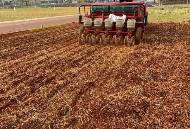do solo, deixando as linhas de semeaduras feitas para os expositores utilizar
