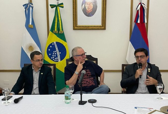 Ainda, no início da manhã a feira foi lançada na Prefeitura de Posadas. A comitiva foi recebida pelo prefeito Leonardo Stelatto. "Temos uma relação muito grande e importante com Santa Rosa. As duas regiões têm pautas econômicas em comum e iremos ampliá-las durante a Fenasoja 2024. Quero parabenizar a organização pelo grande evento que realiza", disse. O presidente da Comissão de Mercosul da feira, Daniel Fuhr, em nome da comitiva, entregou materiais de divulgação e agradeceu pelo apoio do município de Posadas.