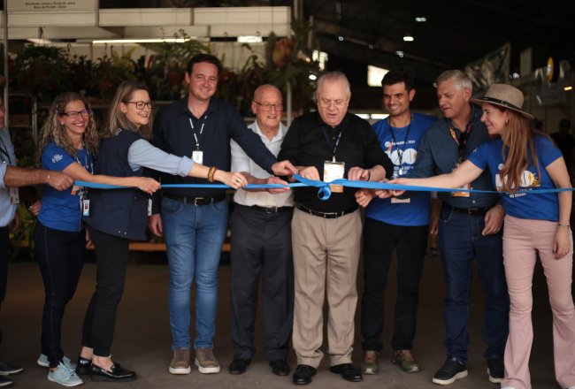Atração permanente da Fenasoja 2024, as atividades do Pavilhão da Agricultura, Soja e Derivados foram abertas oficialmente nesta sexta-feira (29/11), em Santa Rosa. A potencialidade e a diversidade de produtos da agricultura familiar foram celebradas com a presença de diversas lideranças, entre elas, o secretário Estadual de Desenvolvimento Rural, Vilson Covatti, o vice-presidente da feira, Marcos Eduardo Servat, o presidente da Emater/RS, Luciano Schwerz, a presidente da Comissão de Agricultura, Soja e Derivados da Fenasoja 2024, Vanessa Gnoatto, o gerente regional e a gerente adjunta da Emater/RS-Ascar, Valmir Thume e Ivânia Polaczinski, assim como a presidente da Associação dos Produtores de Hortigranjeiros de Santa Rosa (Aphrorosa), Ester Seide, representando os expositores do Pavilhão.