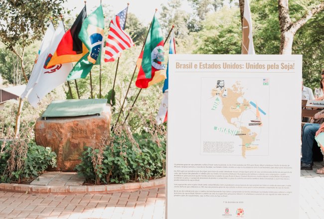 O marco zero foi estabelecido no local onde, há um século, foram plantados os primeiros grãos de soja no Brasil. A inauguração contou com o descerramento de uma placa comemorativa, simbolizando o legado desse cultivo para o país. Walter Lehenbauer, neto do pastor Albert Lehenbauer - responsável por trazer a soja ao Brasil -, emocionou os presentes ao recordar a história de sua família.