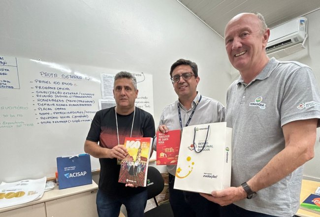 O prefeito Brito, por sua vez, agradeceu a receptividade. "Viemos prestigiar a Fenasoja, mas principalmente agradecer o que a comunidade fez por Taquari. Seremos eternamente gratos aos irmãos santa-rosenses". Durante a tarde, eles percorreram os estandes da feira e conversaram com expositores.