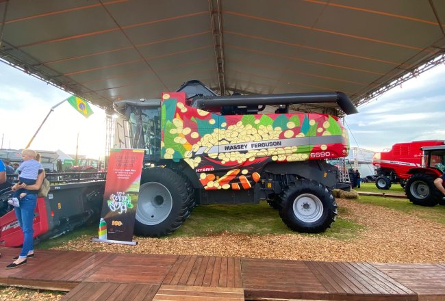 A Massey Ferguson marca presença na Fenasoja 2024 com uma ação especial em homenagem ao centenário da soja no Brasil. Entre as atividades, destaca-se a pintura ao vivo de uma colheitadeira da marca, durante a feira. A obra foi finalizada nesta segunda-feira (2/12) e pode ser visitada no estande da Pippi Máquinas, na Exporural.