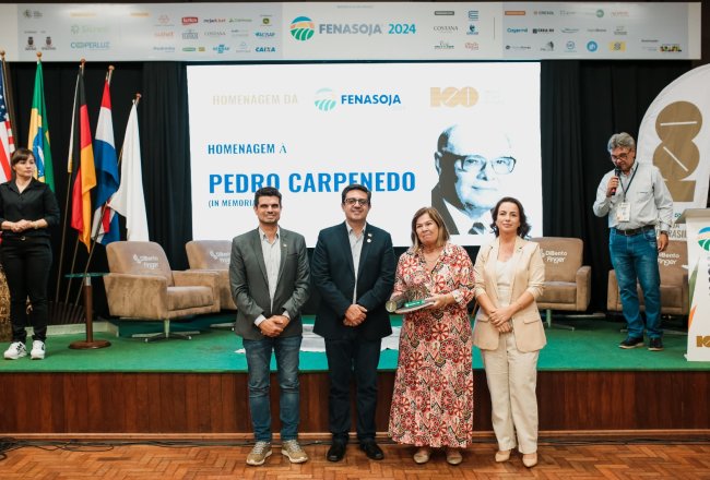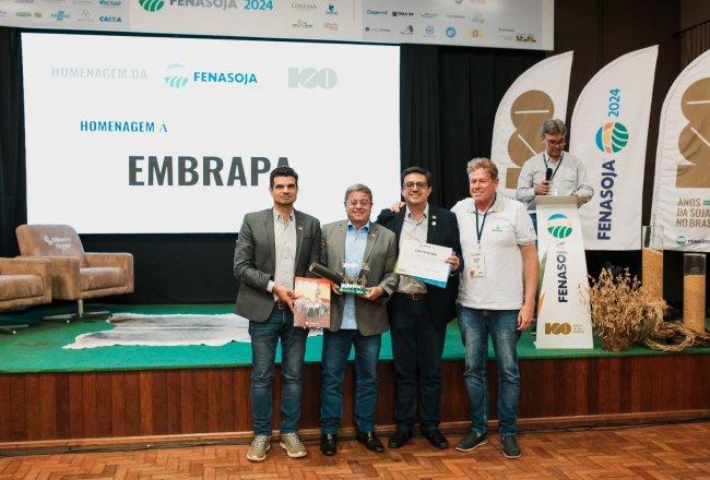 A Embrapa recebeu a homenagem pelas mãos de Alexandre Lima Nepomuceno (Chefe Geral Embrapa Soja), que lembrou que a variedade Santa Rosa foi lançada em 1966 na Fenasoja, e que através da ciência a produtividade deu um salto de 1000 quilos por hectare, para 4000 quilos por hectare atualmente, fazendo com que a cadeia da soja seja responsável por cerca de 6% do PIB - Produto Interno Bruto do Brasil.