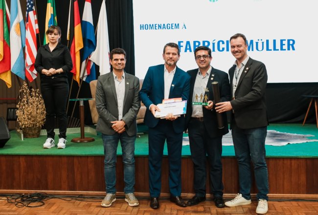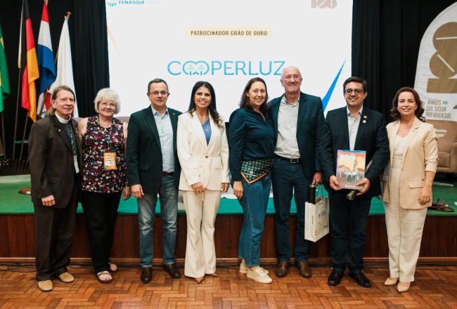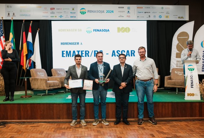 A Emater/RS- ASCAR participou com o presidente Luciano Schwerz, que lembrou que a homenagem remete a história da instituição que completa 70 anos, e da importância da extensão rural para geração de renda e qualidade de vida, tendo em vista que 80% das propriedades da cadeia da soja no estado são de agricultores familiares.