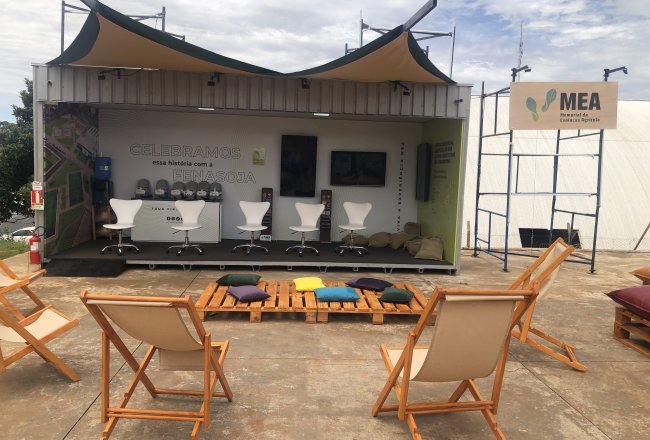 "O Espaço inclui abrigo dentro de um contêiner adaptado para oferecer informações sobre as atividades do MEA e seu acervo. Através de óculos 3D, o público pode dar um passeio pelas dependências do Memorial e conhecer o universo da evolução agrícola na região. Todos estão convidados a essa imersão", ressalta a museóloga Karina Muniz Viana, diretora do MEA.
