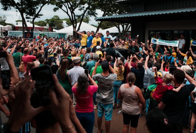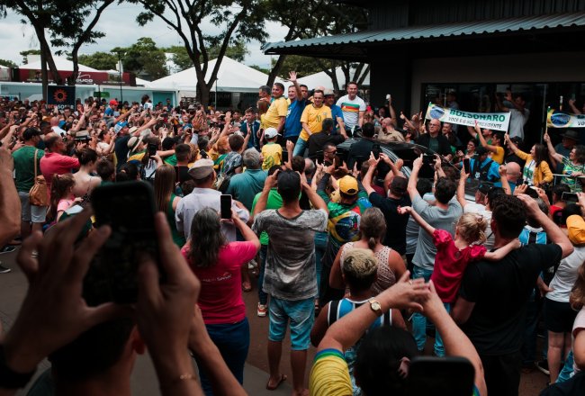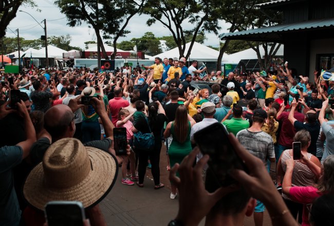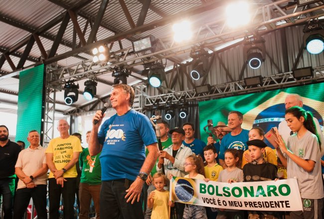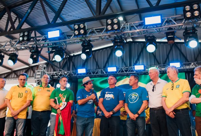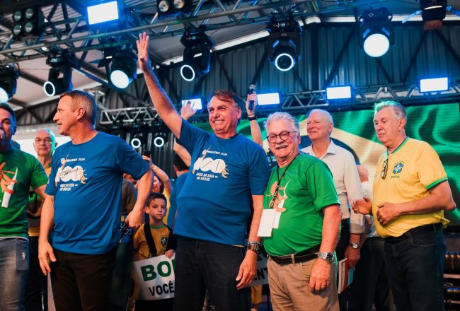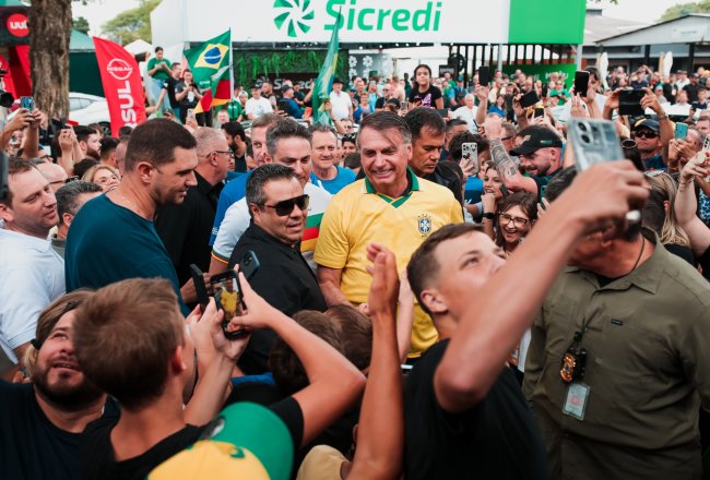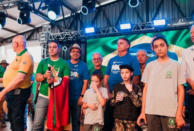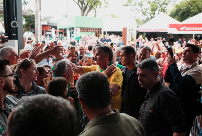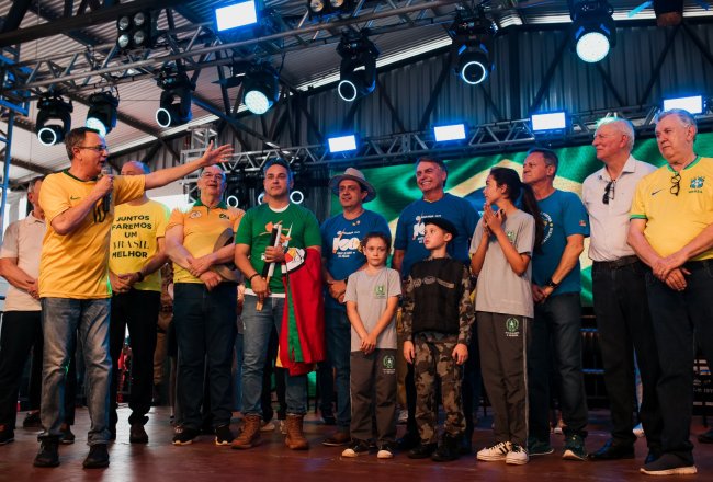 O ex-presidente Jair Bolsonaro visitou a Fenasoja 2024 nesta sexta-feira, 6 de dezembro. Durante a visita, Bolsonaro discursou para apoiadores no Palco Cultural, mobilizando a população de Santa Rosa e região. Também estiveram presentes o senador Luiz Carlos Heinze, o prefeito de Santa Rosa Anderson Mantei e os deputados federais Osmar Terra, Marcel Van Hattem, Marcelo Moraes, Ubiratan Sanderson, Giovani Cherini e Zucco.
