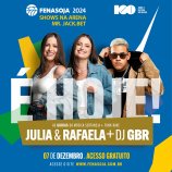 O último final de semana de Fenasoja será marcado por atrações nacionais. Neste sábado, quem sobe ao palco é a dupla revelação do sertanejo Júlia e Rafaela e o Dj GBR. Hoje, quem acessar o parque pagará R$ 10 e poderá acessar o setor pista de forma gratuita. O show inicia às 22h, horário que fecham os portões do Parque de Exposições.