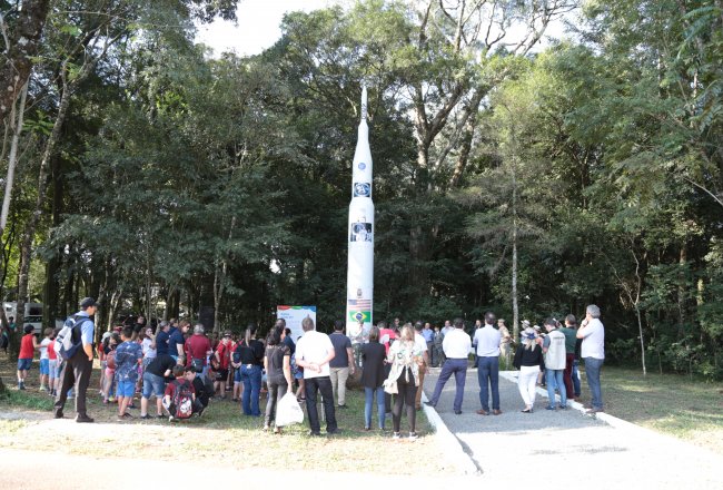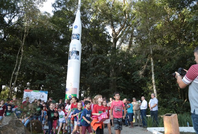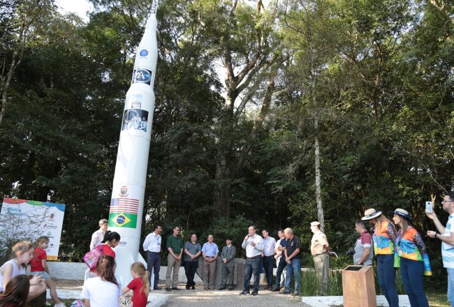 Ocorreu na tarde desta quinta-feira, 03 de maio, a inauguração de uma réplica da Nave Apollo 14. O monumento foi instalado no Parque da Fenasoja, ao lado da árvore Lunar, a qual foi germinada na Lua.